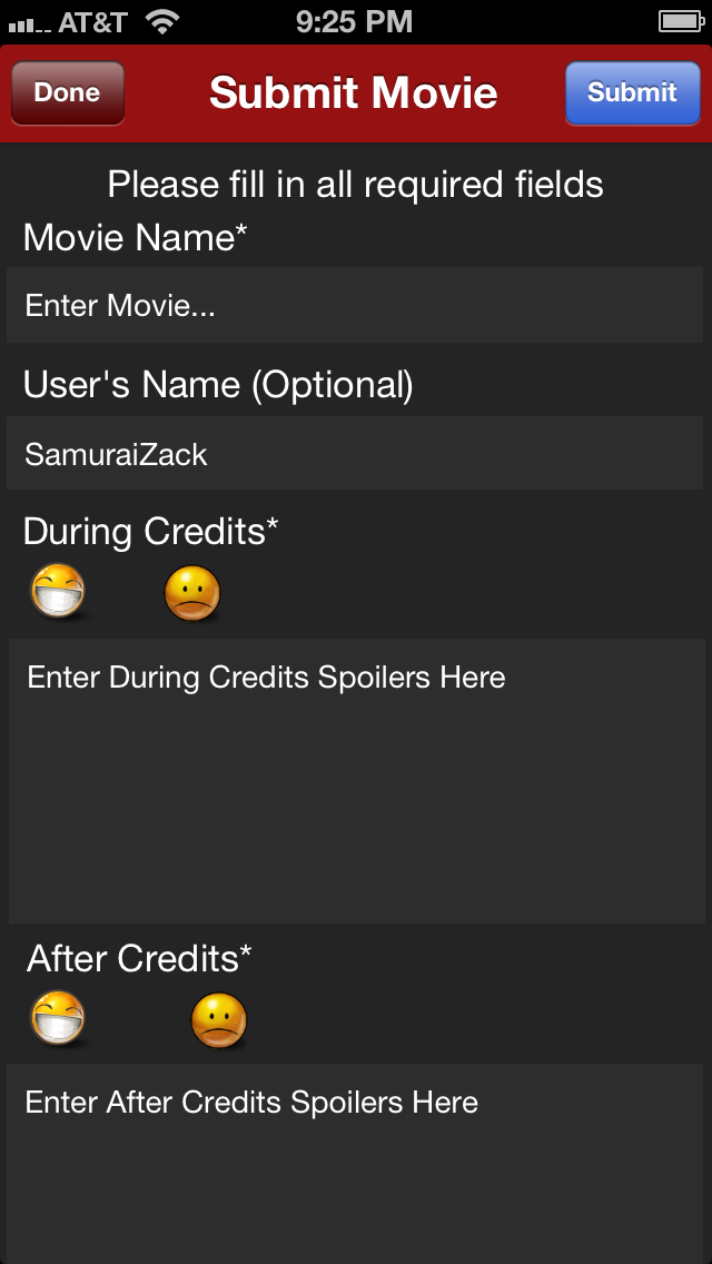 This is the new (not that new) submit/update view. All I added was two new text views so that users could add the spoilers. These are now required if user submits a movie that has a clip during or after credits. I have a feeling this view will be redesigned in the near future!