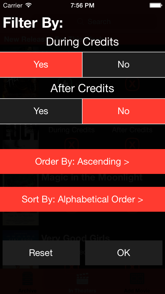 One of the most requested features and I’m proud to announce that it’s finally here! Yes this was in an older version of the app but I had to take it out because it didn’t match the design. This one is even better now! It has a bunch of sorting options to get you to see the movies you really want to see.